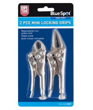 2 PCE 100mm & 125mm (4" & 5") Mini Locking Plier Set is manufactured from nickel-plated steel for increased durability. The set comprises of a 100mm (4") mini curved locking grip and a long nose 125mm (5"). Both feature a thumb screw for easy adjustment and a quick release.