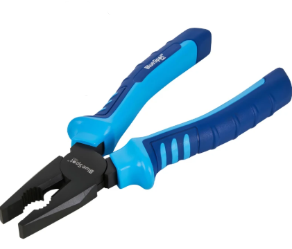 200mm / 8" Combination Pliers (08186) The BlueSpot 200mm Combination Plier is manufactured from drop forged micro plated steel for increased durability. Features soft grip vinyl handles with slip guard for increased comfort.Manufactured from drop forged micro plated steel for increased durabilitySoft grip vinyl handles with slip guard for increased comfortLength: 200mm / 8"