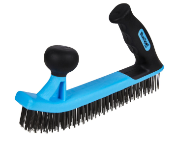 The Blue Spot 2 handed heavy duty wire brush is manufactured from ABS plastic for increased durability and has 2 soft grip handles to aid user comfort. The brush has 5 rows of carbon steel bristles which make light work of any rust or paint removal job among many other tasks.