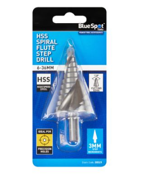 Drills holes in 3mm increments from 6-36mm. Manufactured from high speed steel for increased durability and cutting power.