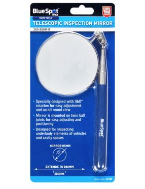 Swivel Telescopic Inspection Mirror is specially designed with 360° rotation for easy adjustment and an all-round view. The mirror is mounted on twin ball joints for easy adjusting and positioning. Designed for inspecting underbody elements of vehicles and cavity spaces. Extends from 280mm to 880mm.